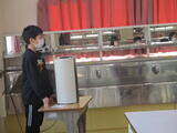 今日は3~6年生がスキー学習に行っていて、1,2年生で給食を食べました。