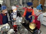 今日は家庭科の学習でご飯と味噌汁を作りました。登校してからお米を研ぎ、煮干しからだしをとって、揚げや大根を切りました。包丁をていねいに扱うことや火傷に注意することなど安全に気を付けながら楽しく調理しました。