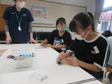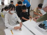 5・6年生のサイエンスカーでは、「ぽんぽん蒸気船」を作りました。液体が気体になる時に体積が大きくなること仕組みを説明してもらい、蒸気船の作り方を教えてもらいました。途中で難しい工程があっても先生たちの話をよく聞いたり、友達同士で教え合ったりしていました。
