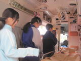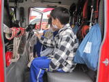 社会科で消防署ではたらく人について学習しています。消防署の仕事やそこで働く人の思いについて、実際に見学をしたり、話を聞いたりして学んできました。その中でも、3年生が一番目を輝かせていたのは、消防車と救急車に乗せてもらったときでした。消火や救急に必要な設備や道具が積まれていることに驚いていました。救急車の中にかわいいキャラクターの人形があって、口々に「なんでかな?」と言っていると、署の方が「救急車には小さい子も乗ることがあるから、安心してもらうためだよ」とおっしゃいました。