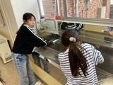 どの掃除場所にしようか迷っていたMさんは1年生2人と教室掃除を行いました。1年生の雑巾があまり絞れていないと、代わりにきつく絞ってあげていました。