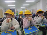 今日は、生活科の学習で学校の楽しみの一つである「給食」にゆかりがある施設で働いている方の話を聞きに行きました。牛乳を作って販売されている「富山アルペン乳業」と学校給食を作って運んでいる「立山町学校給食センター」を見学したり、質問をしたりしました。