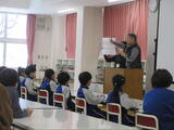 避難訓練後、防災担当先生のから、学校では机の下に体を入れて、頭を守ること、体育館等、机のない場所では、頭を腕で抱え込んでしゃがむようにしましょうと指導の話がありました。