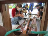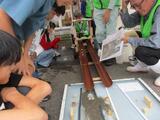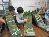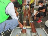 水を流した実験では、水の量や傾斜の違いによって、流れる砂(土砂)や石(岩石)の動きが違うこと。天然ダムを押し流しても、砂防ダムを設置することで、流れる土砂が減る、砂防ダムの数も2つ、3つと増やすと、下流の平面(平野)に流れ着く土砂がほとんどないことを体感することができました。